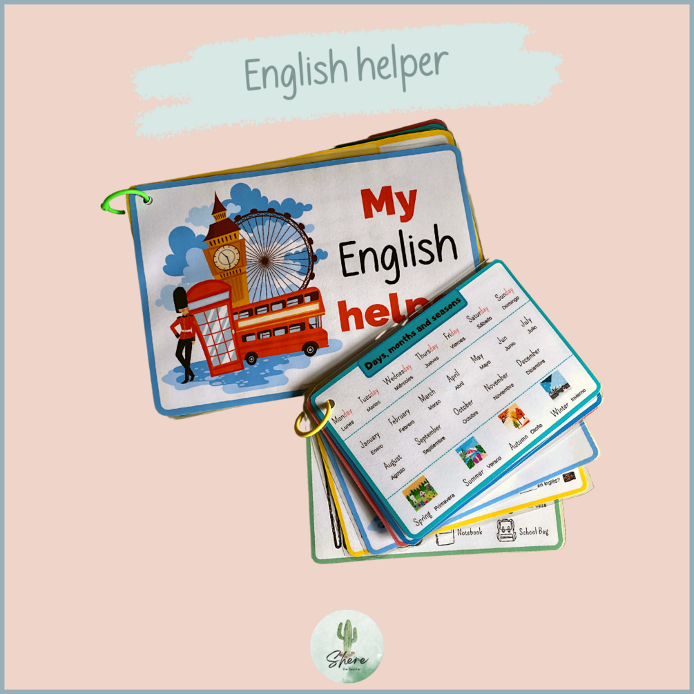 Flashcards para crear un mini book, bien como ayuda individual para los alumnos o como recurso para tener en el aula. Contiene números, estaciones, meses, días de la semana, horas, colores, school objects, useful sentences, etc. Iré añadiendo más flashcards.